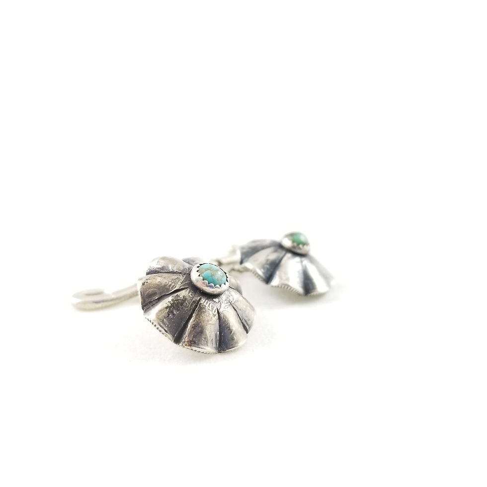 Art Deco Coin Silver & Turquoise Concho Cuff Links
